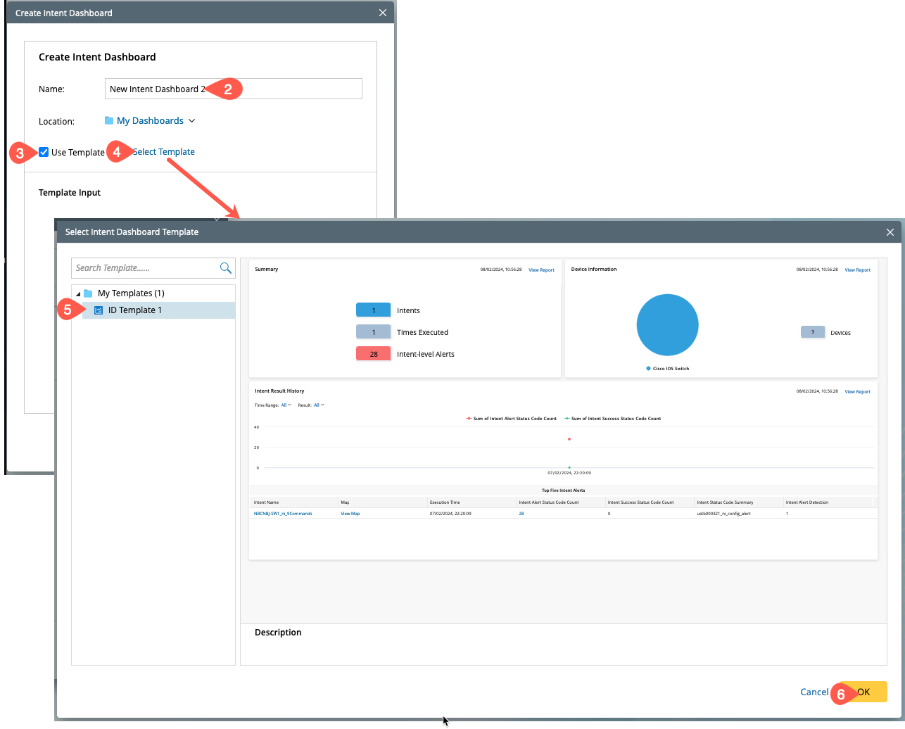 - Click Select Template, a window Select Intent Dashboard Template will appear.
