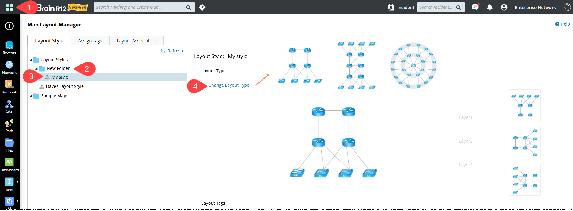- In the Layout Style area, click Change Layout Type to select a layout type suitable for your three-layer network.