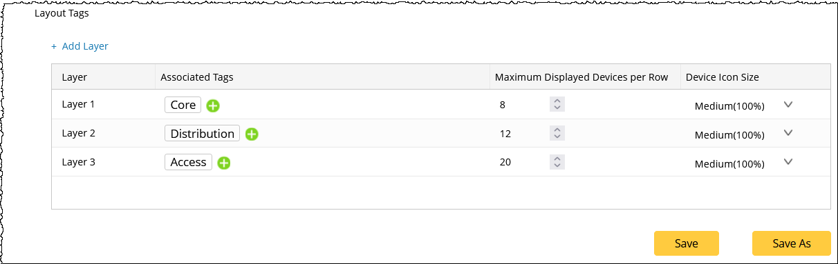 icon to create a layout tag. Enter core, distribution, and access as tag names, respectively. The tags will be used to associate layout layers with devices.