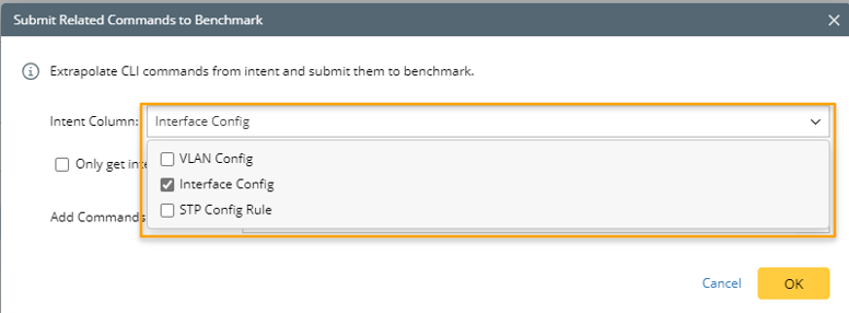 and select the Submit Related Commands to Benchmark from the menu of an intent column.