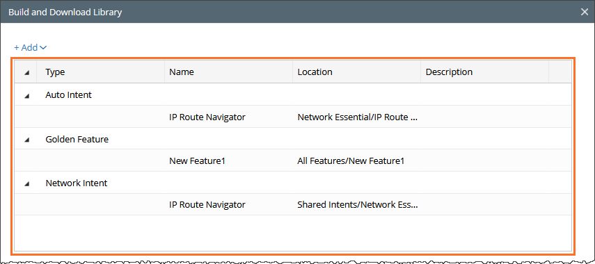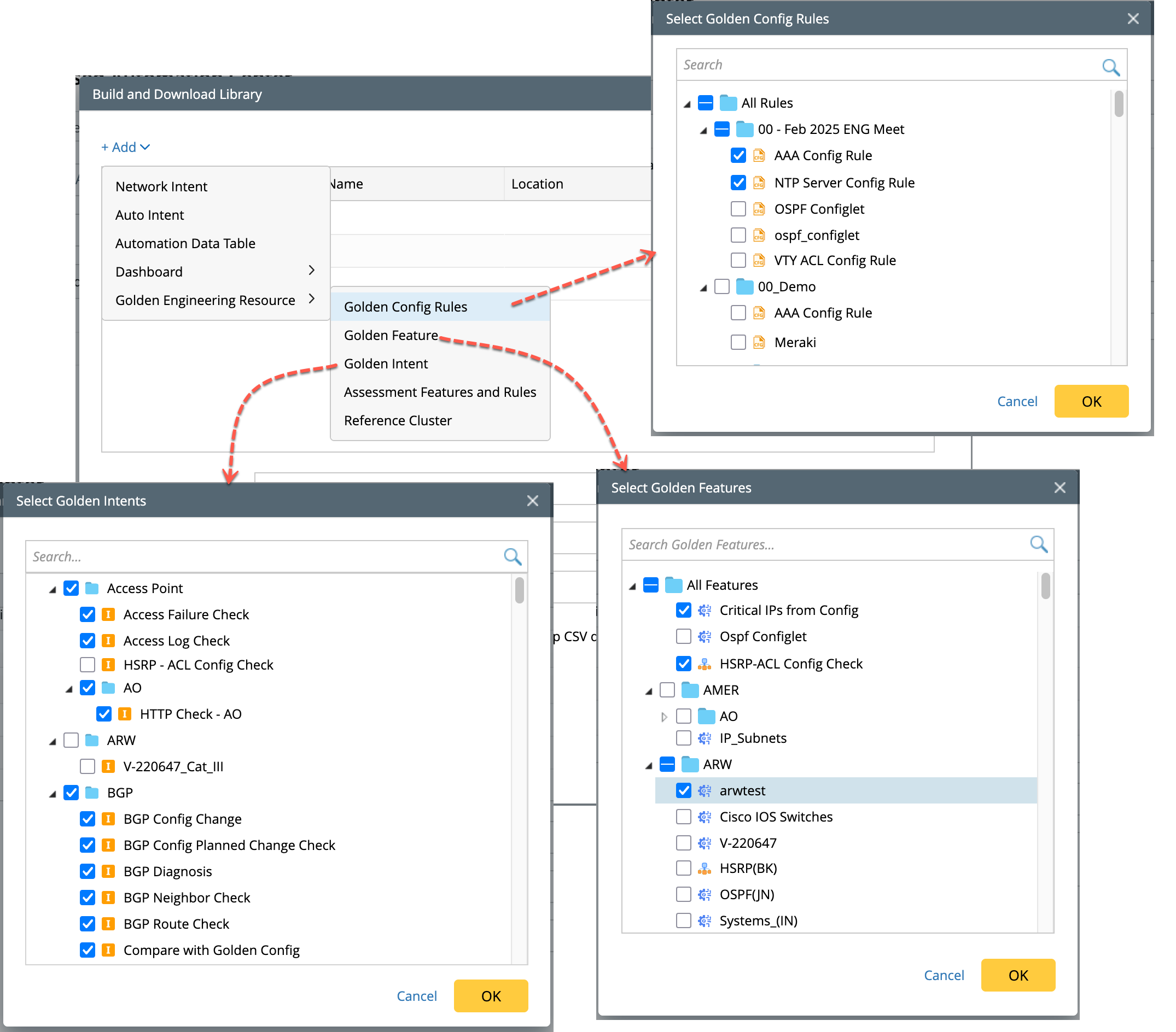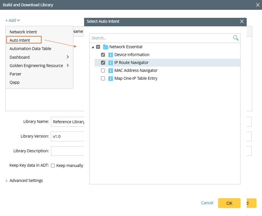 Example: Golden Config Templates in ADT and intents in the manually defined intent column can be exported as resource in Library.