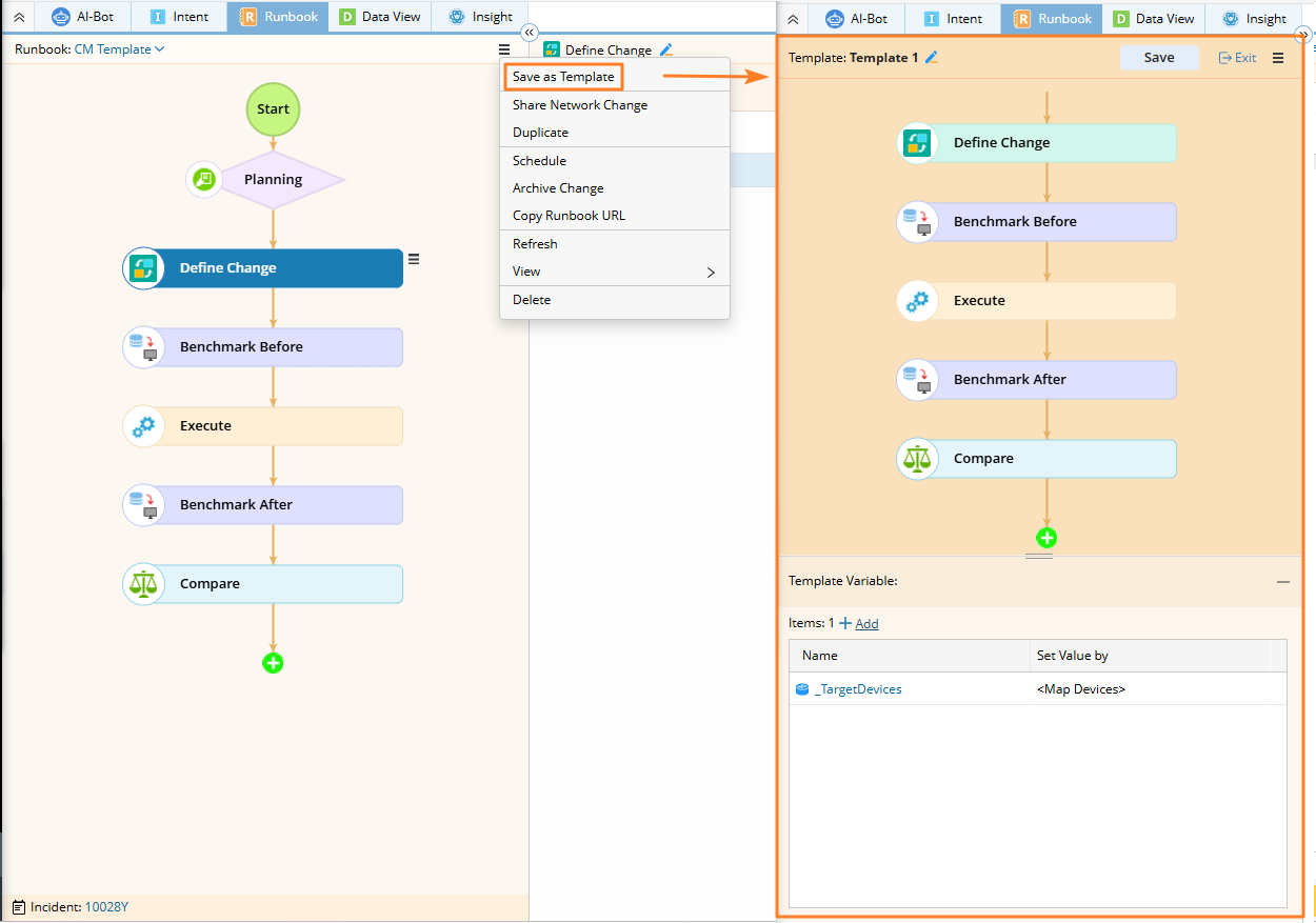 - In this network change runbook editor, click the