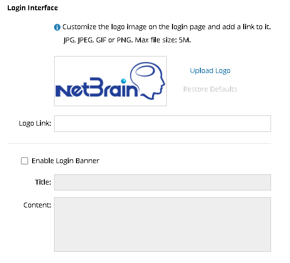 By default, the logo image of NetBrain is displayed on the login page, and there is no banner.