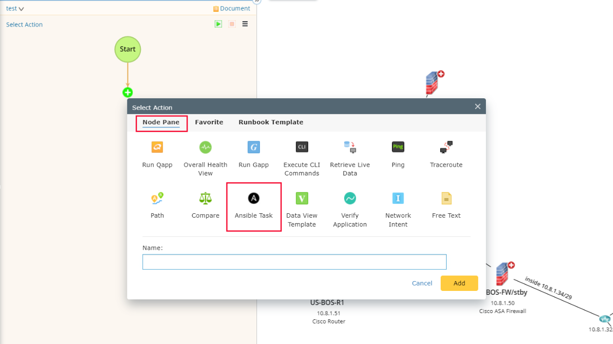 - Select Ansible Task under the Node Pane tab. Click Add.