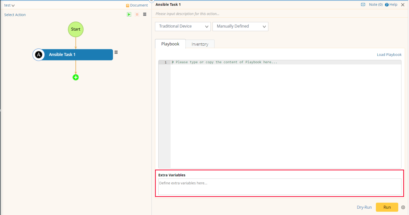 - (Optional) Define the Extra Variables required for playbook execution in the bottom text field.