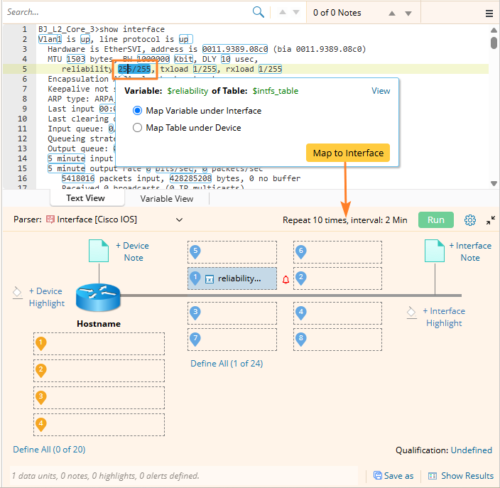 - Map and Configure: Click on a number value and then select Map to Interface to expand the definition area and configure how the automation is applied.