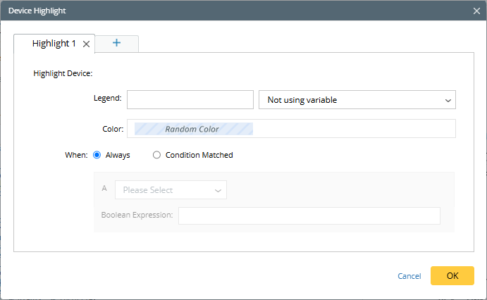 Define Alerts and Device Highlight: When these are defined, they will be displayed on the map, it will be displayed when the value deviates from the defined threshold or condition.