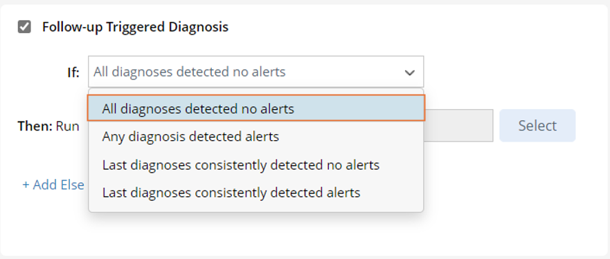 , then select one of the four options as the condition (in this example, the option "All diagnoses detected no alerts" is selected).