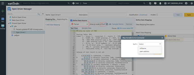Note: Users can choose a Parser with the CLI Command with parameters such as show ip route vrf $VrfName. However, users cannot enter the CLI command with the parameters directly.