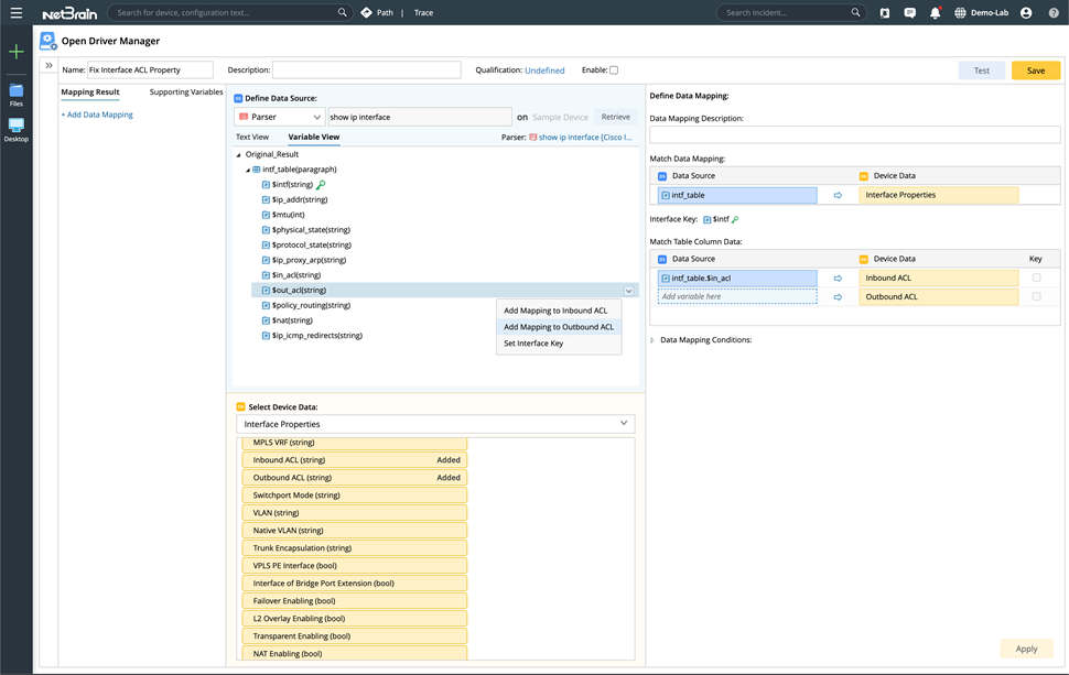 Tip: When variables defined by the data source Parser cannot be directly mapped to a target device data, you need to define the supporting variables first and then map the variables to the target device data.