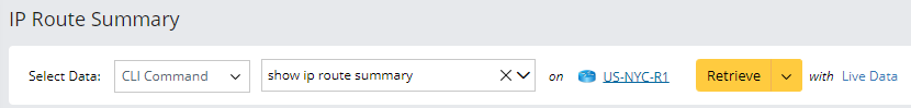 In this example, you retrieve CLI command data for the command show ip route summary from the device US-NYC-R1.