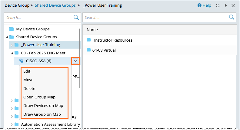 Note: This operation is unavailable for device groups in System Device Groups and Media. |