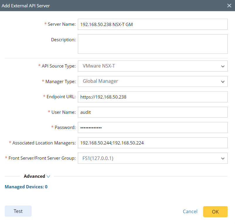 Add NSX-T Global Manager into API Server Manager