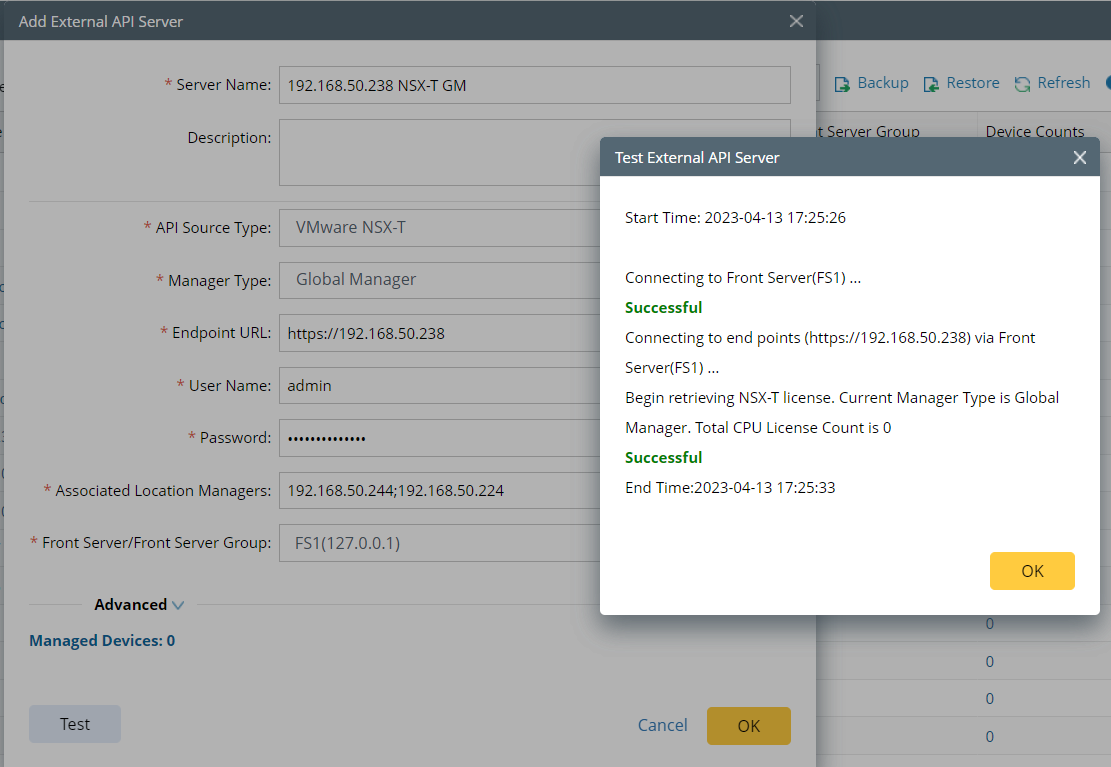 Note: Global Manager does not count towards the license, but you need to set up the Local Manager API Server Setting first.