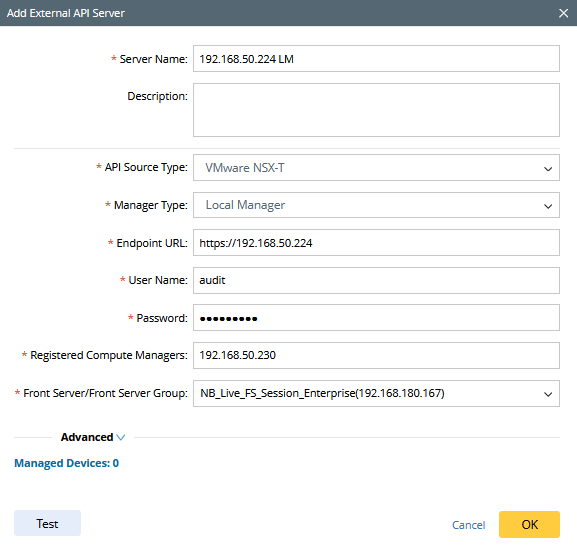 Note: For the successful discovery of NSX-T, please make sure to input the correct IP addresses of those Computer Manager (vCenter) and the vCenter API Server Setting for those IP addresses in step1.3.1 can be tested successfully.