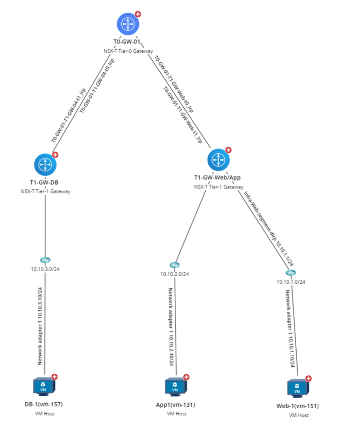 Example: A Visualized L2/L3 Topology Map of 3-Tier NSX-T Network.
