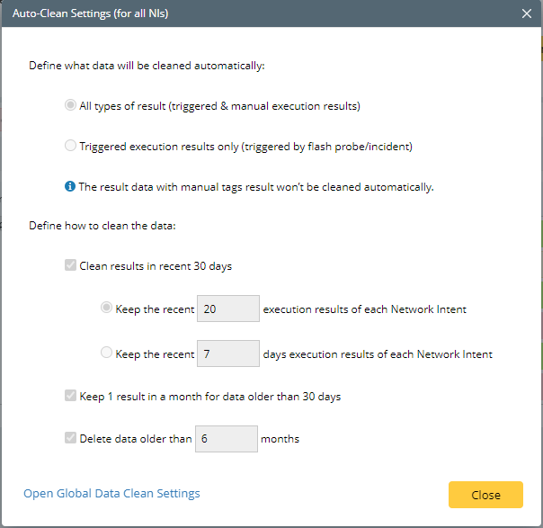 All Types of results (triggered & manual execution result): Indicates that the NI results both generated by triggering and manually executing can be cleaned up automatically.