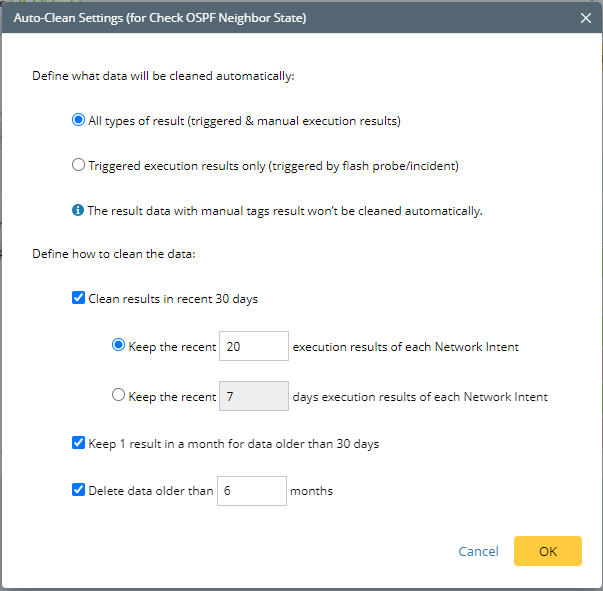 - Triggered execution results only: Indicates that only the NI results generated by triggering can be automatically cleaned up (it is selected by default).