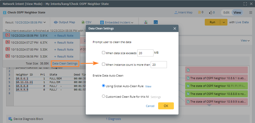 Using Global Auto-Clean Rule: By default, this option is selected, indicating the NI result will be cleaned using the rule defined in the Global Auto Clean. Click View to see the setting details.