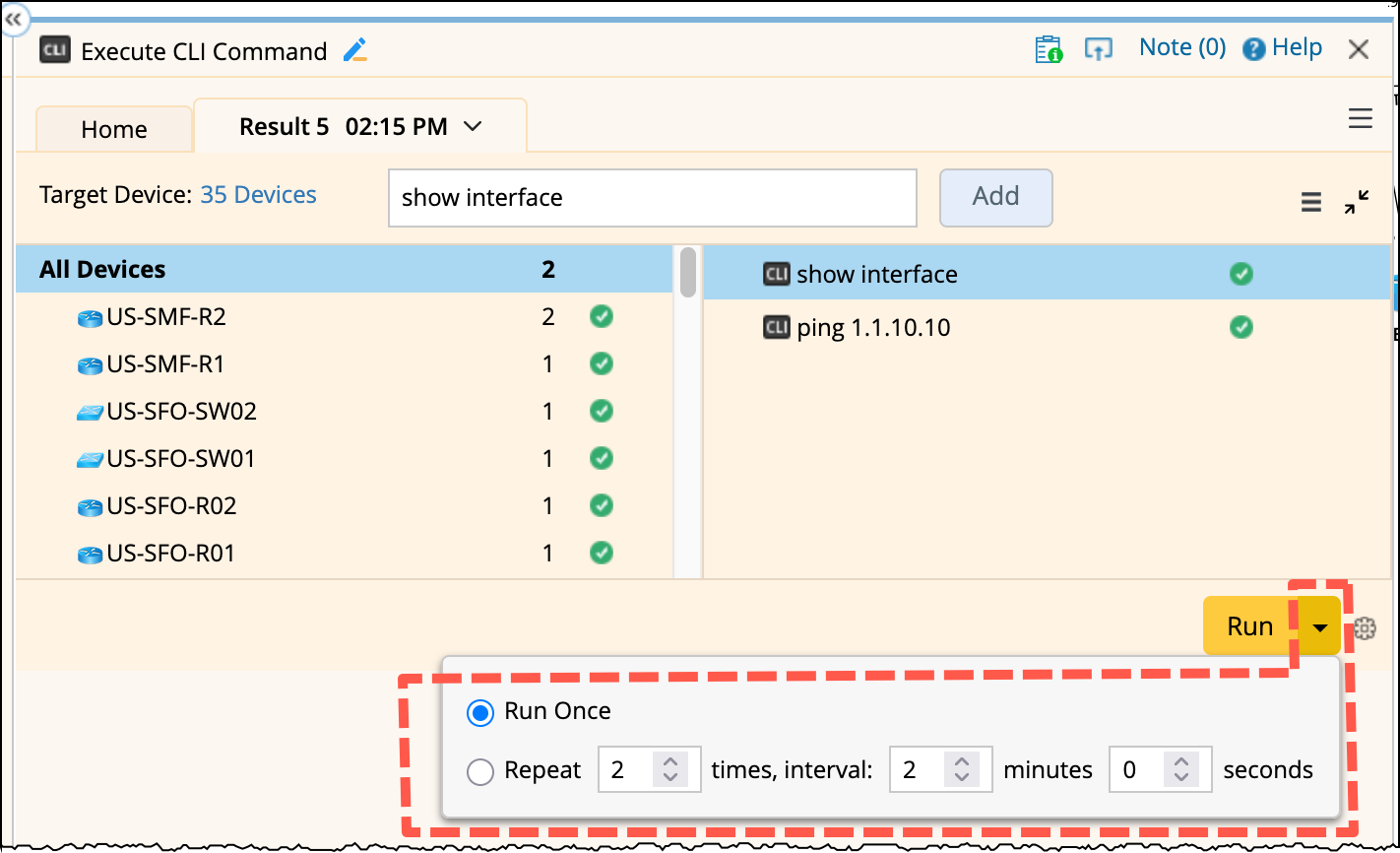 Click Run to execute the commands. Also, you can set the execution frequency from