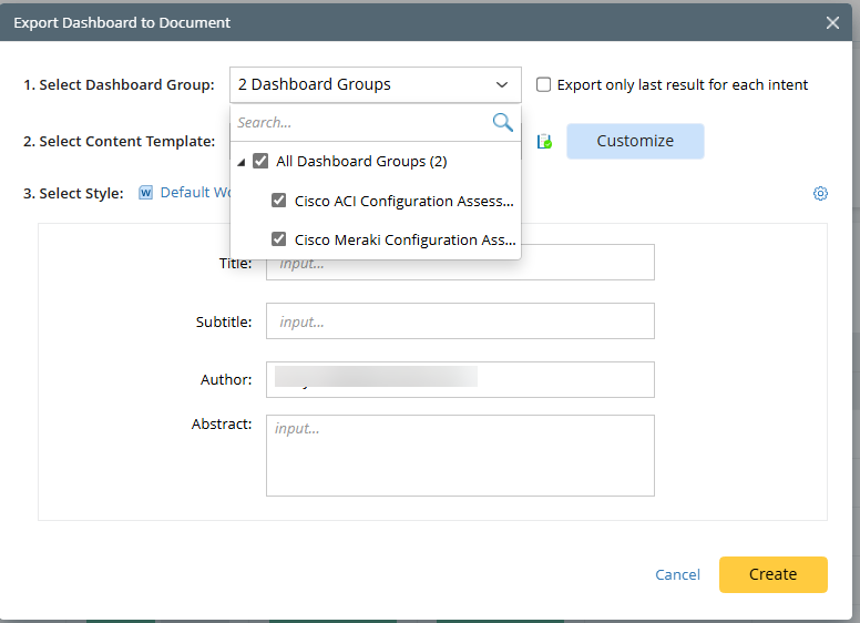 - Select Dashboard Group. You can select which dashboard group’s automation results to export.
