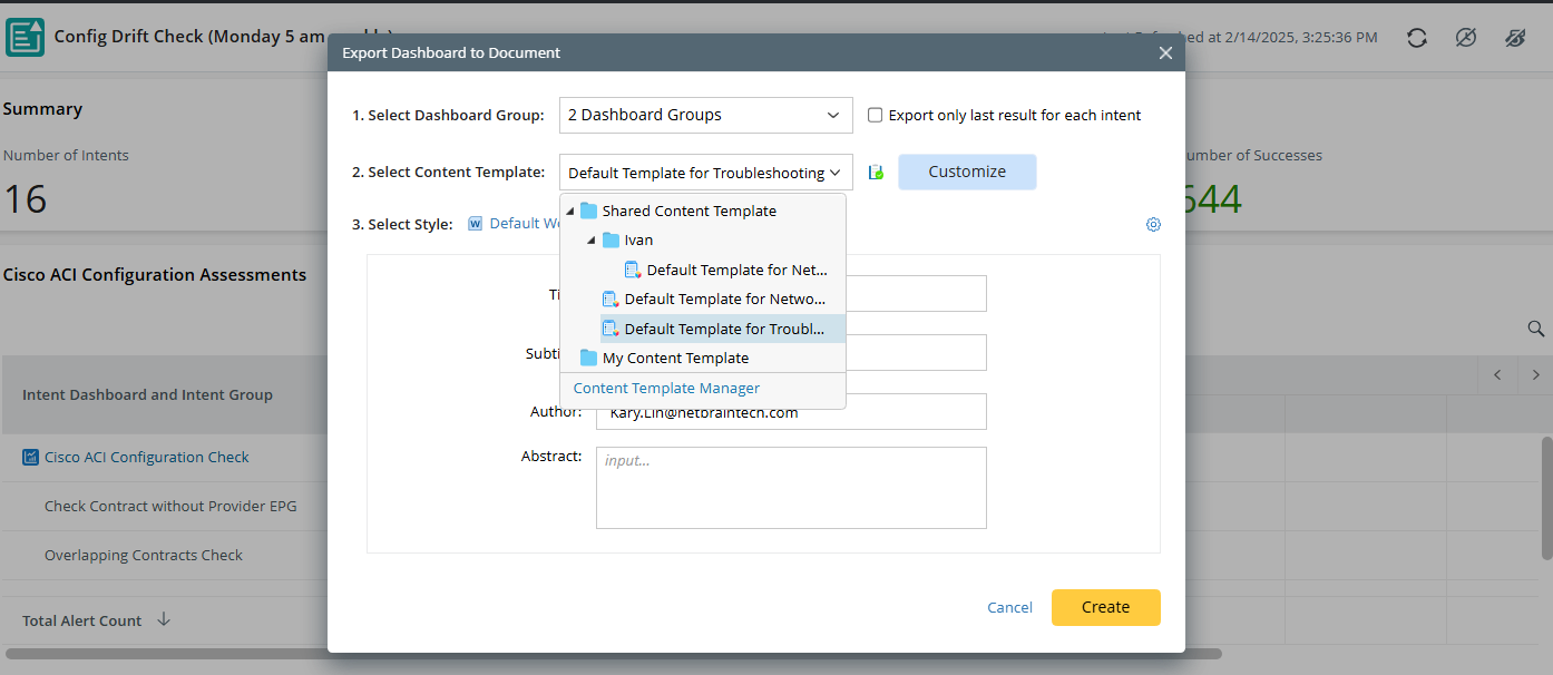 You can export automation results from an observability dashboard to a Word document. You can also organize the structure and further edit the document in AI Document.
