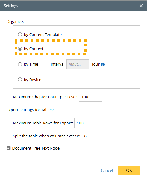 - To preserve the dashboard’s hierarchy of data and details, select Organize By Context when customizing a template.