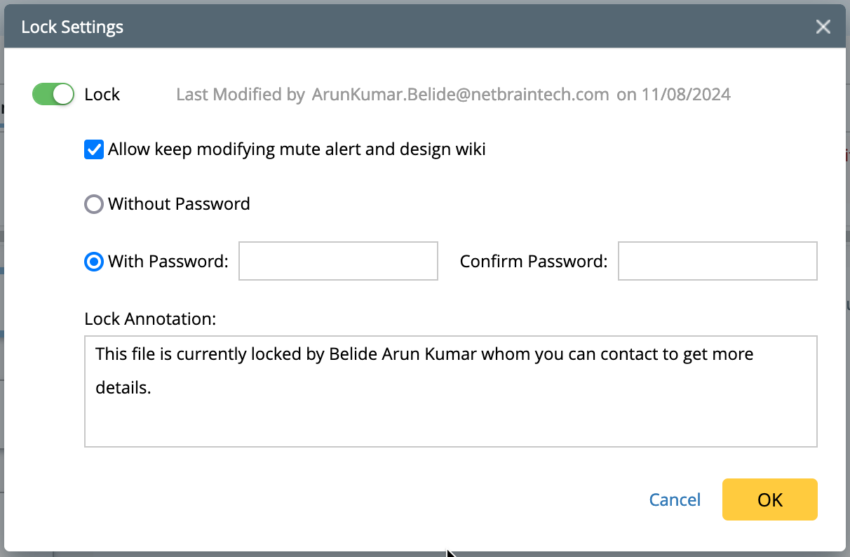 Lock function: This feature locks the Golden rule to prevent edits by other users. However, any user can still verify the configuration without needing special access privileges. And you have an option to set a password to unlock the rule.