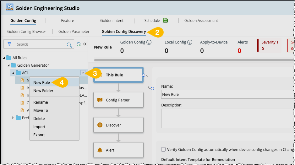 By default, the Golden Config Discovery pane will open in the This Rule node. The flow to create a golden rule from this step onwards is shown in the following diagram: