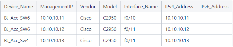 Interface_Name The interface name of the device that you will import. IPv4_Address The interface IPv4 address of the device that you will import. IPv6_Address The interface IPv6 address of the device that you will import.