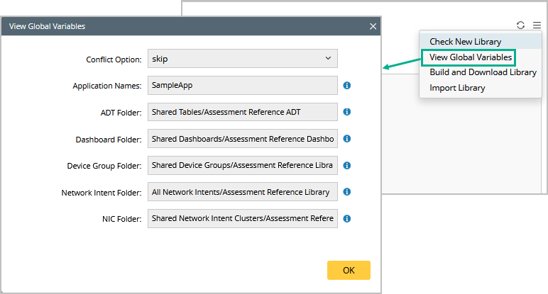Note: You can view the input variables stored in the library from the Hamburger menu.