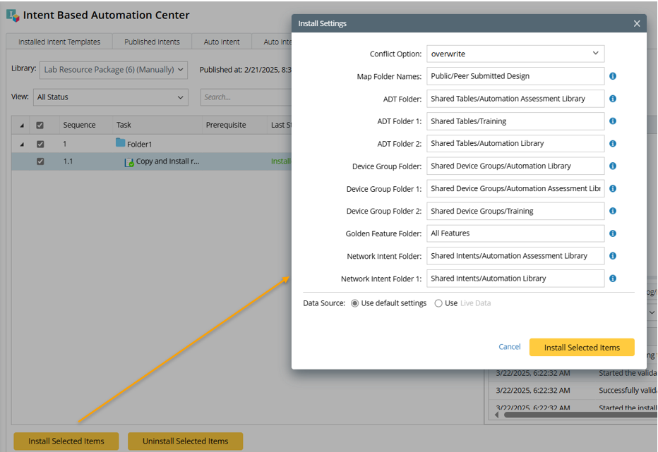 - Define the install settings in the pop-up Install Settings dialog box, then click Install Selected Items.