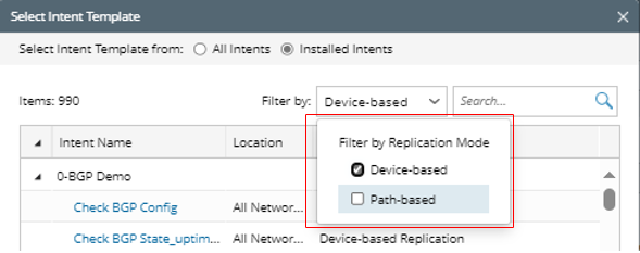 Note: NITs can be categorized into device-based NIT and path-based NIT. Check the checkbox in the Filter by field to select from the two options Device-based and Path-based to filter intent templates by the replication mode, so that the scope of selectable NITs is narrowed down to make selecting NIT easier.