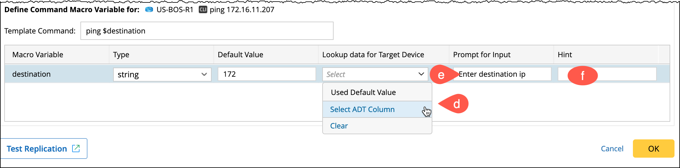 - Select a seed device entry, and a section to define the Command Macro Variable will appear at the bottom.