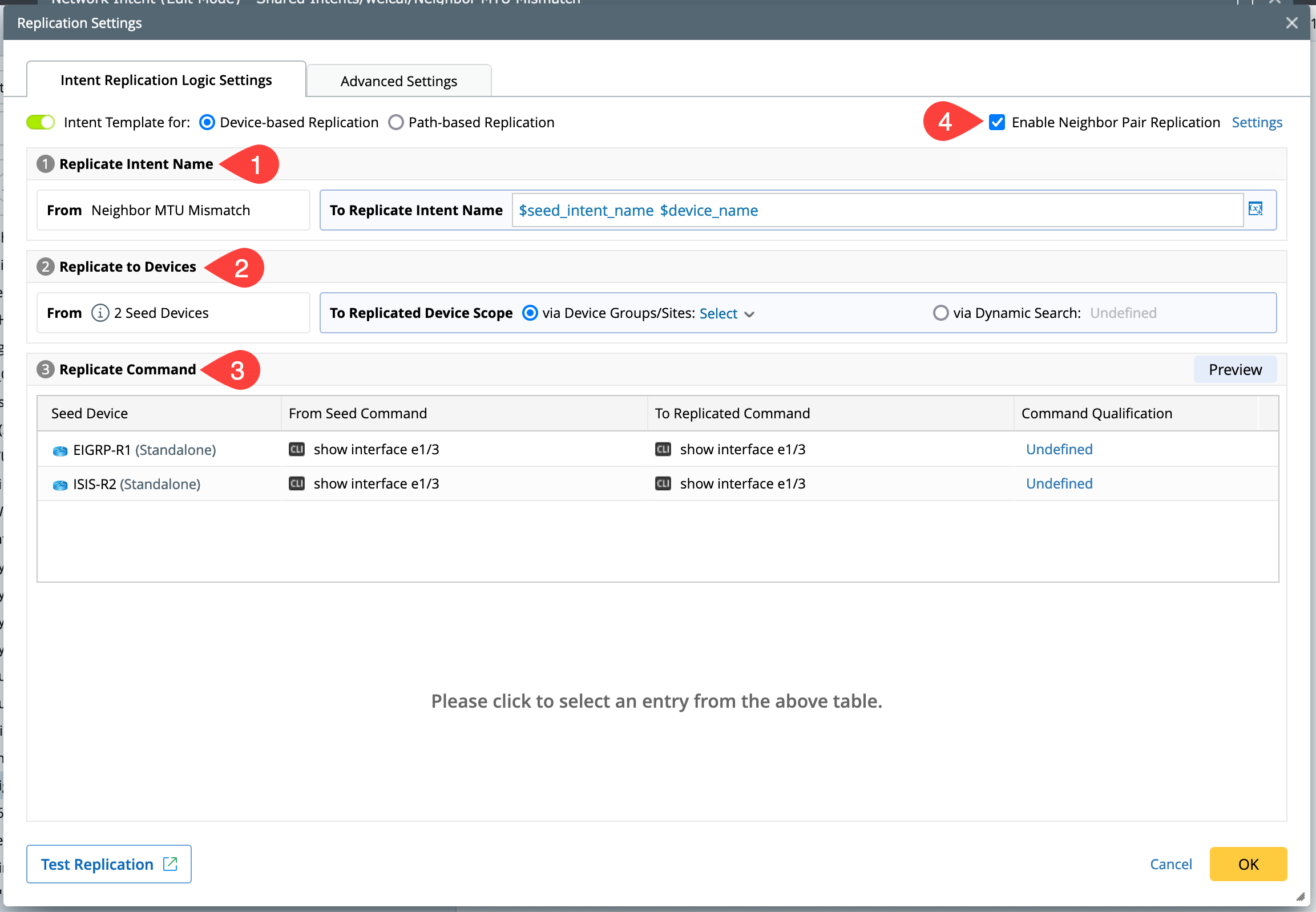 Intent Replication Logic Settings