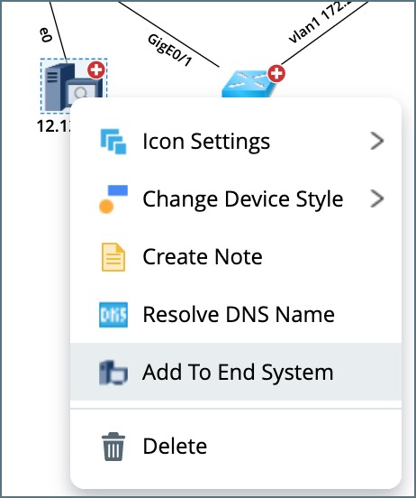 Note: You can resolve the DNS name for an unknown end system from the map if the end system is mapped: Right-click the unknown end system on the map, and then select Resolve DNS Name from the menu.