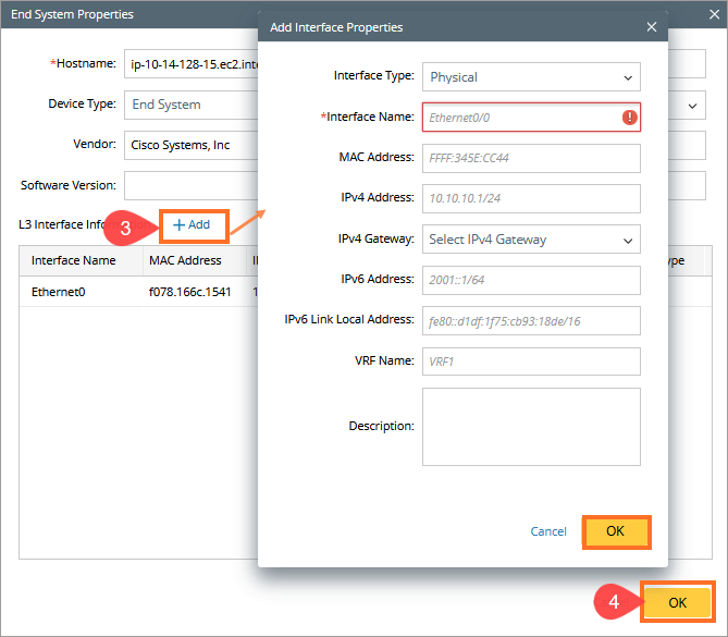 - (Optional) Click Add to add an L3 interface. Specify the information about the added L3 interface, and then click OK.