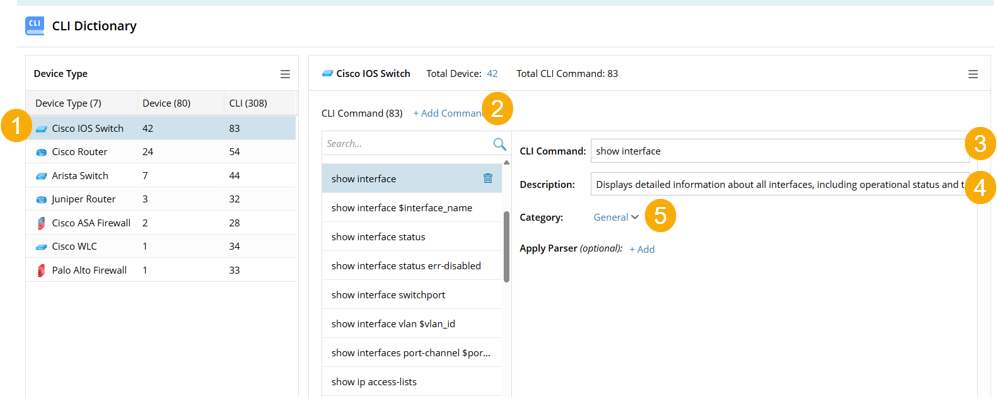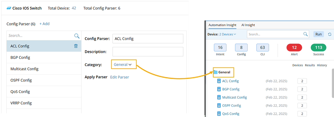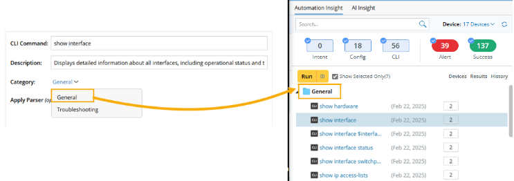 Select its category. The category can organize the CLI commands on the Automation Insight tab. The default category is General.