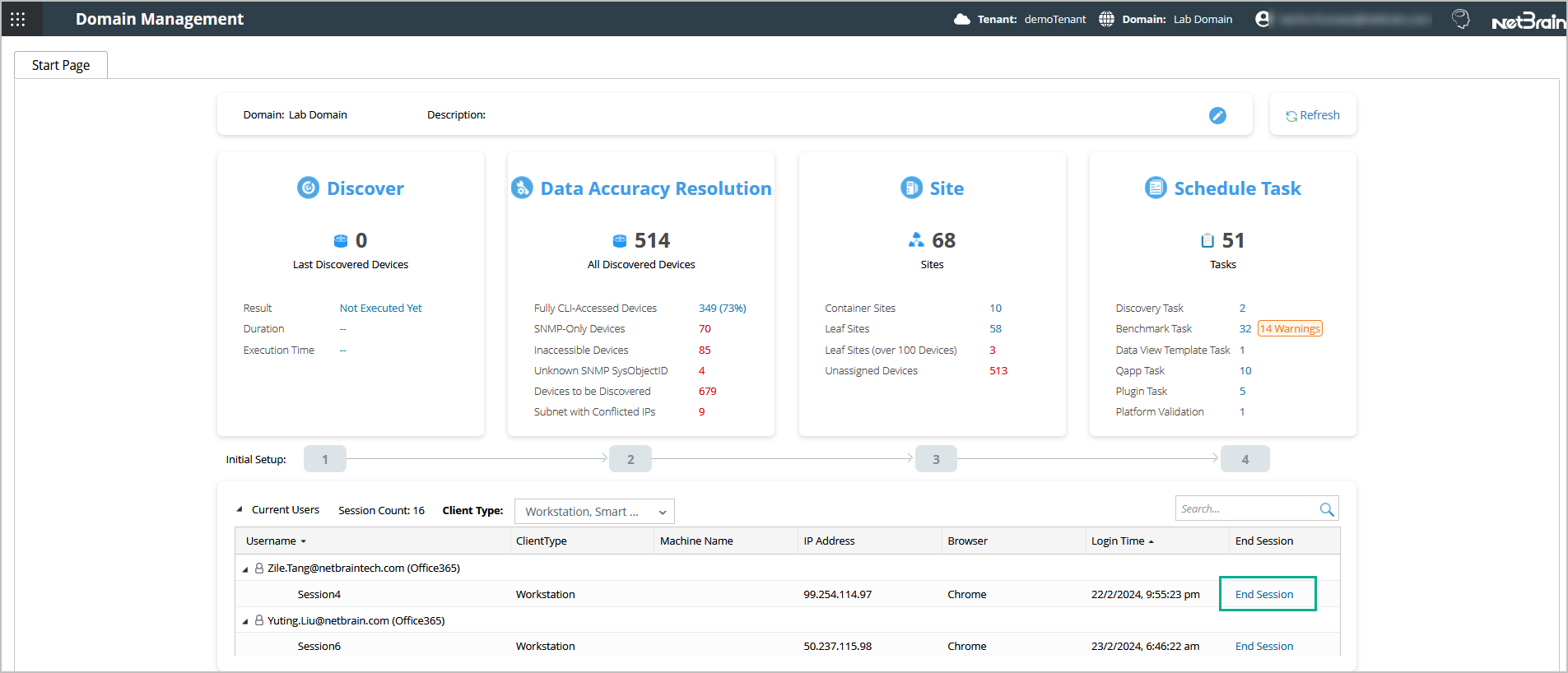 - Log in to the Domain Management page. The Start Page is displayed by default, and all online users in this domain are listed.