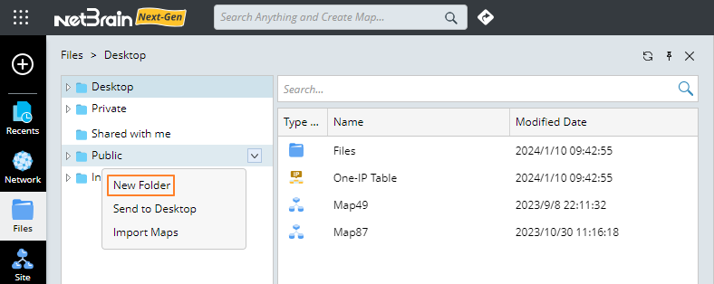 - Function Map — a central place to manage and display all types of maps, including Common Map, Site Map, Device Group Map, Path Map, Intent Map and Member Intent Map. It is located at the bottom of the Files pane.