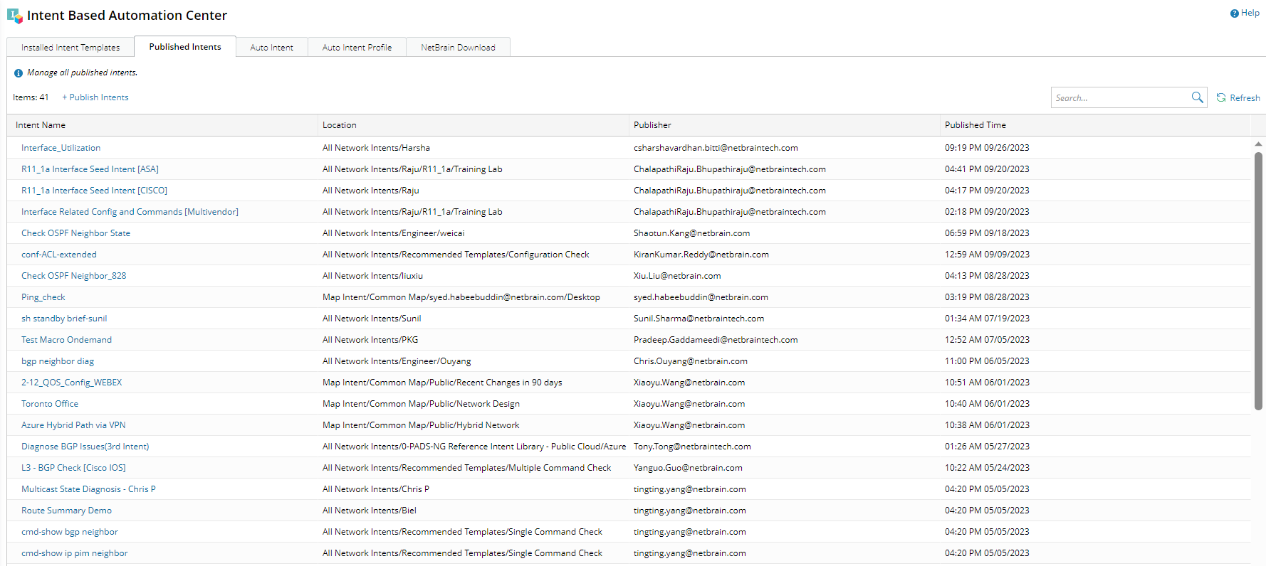 - Intent Name: A link to the published intent. You can click the intent name to view the intent details.