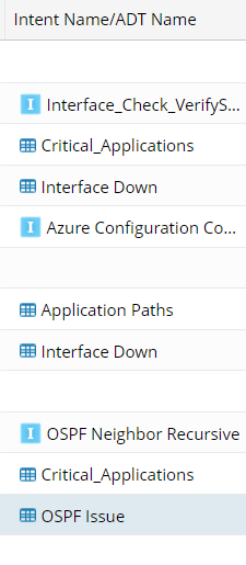 - In the Intent Name/ADT Name column, the intents, Intent Templates for triggered automation are designated by the icon