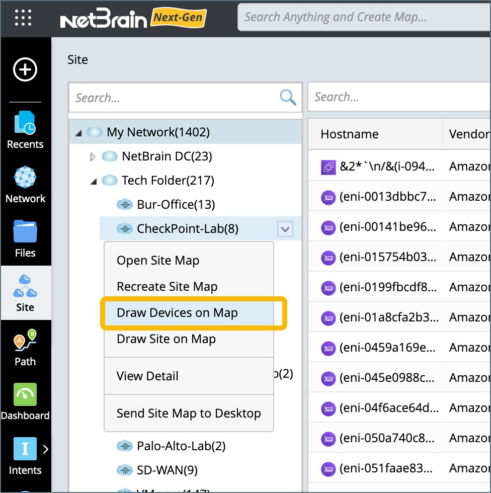 A site map is a system-generated map, while Draw Devices on Map gives you the freedom to add devices in a specific site to any map.