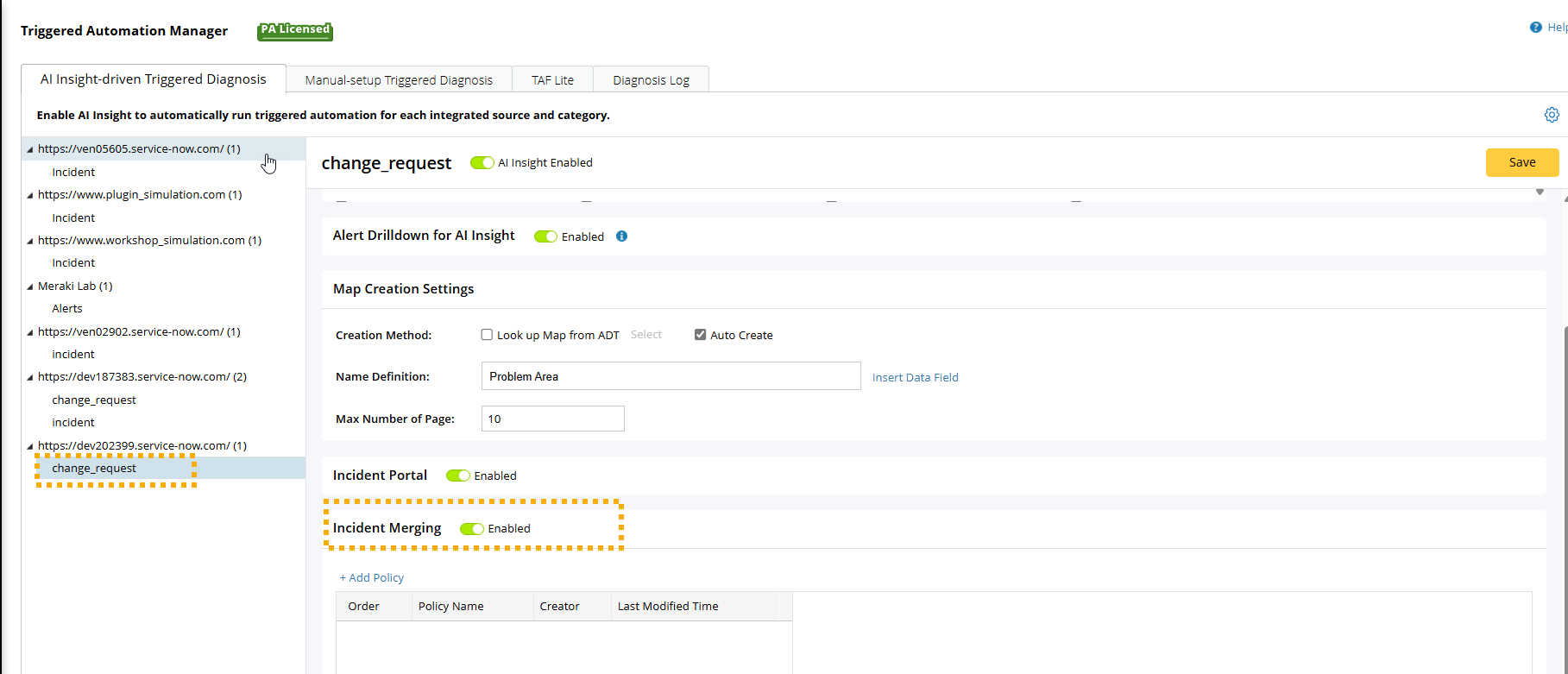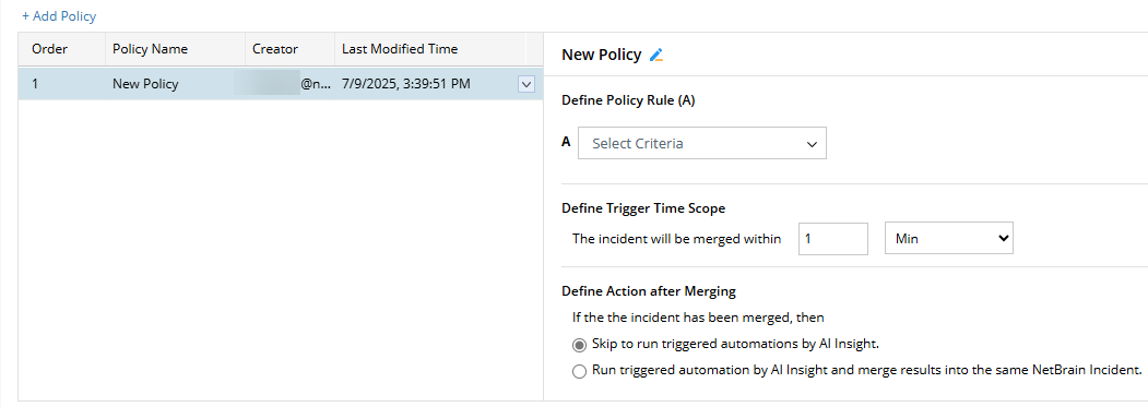 Click Add Policy to add a policy to specify when and how the incidents should be merged.