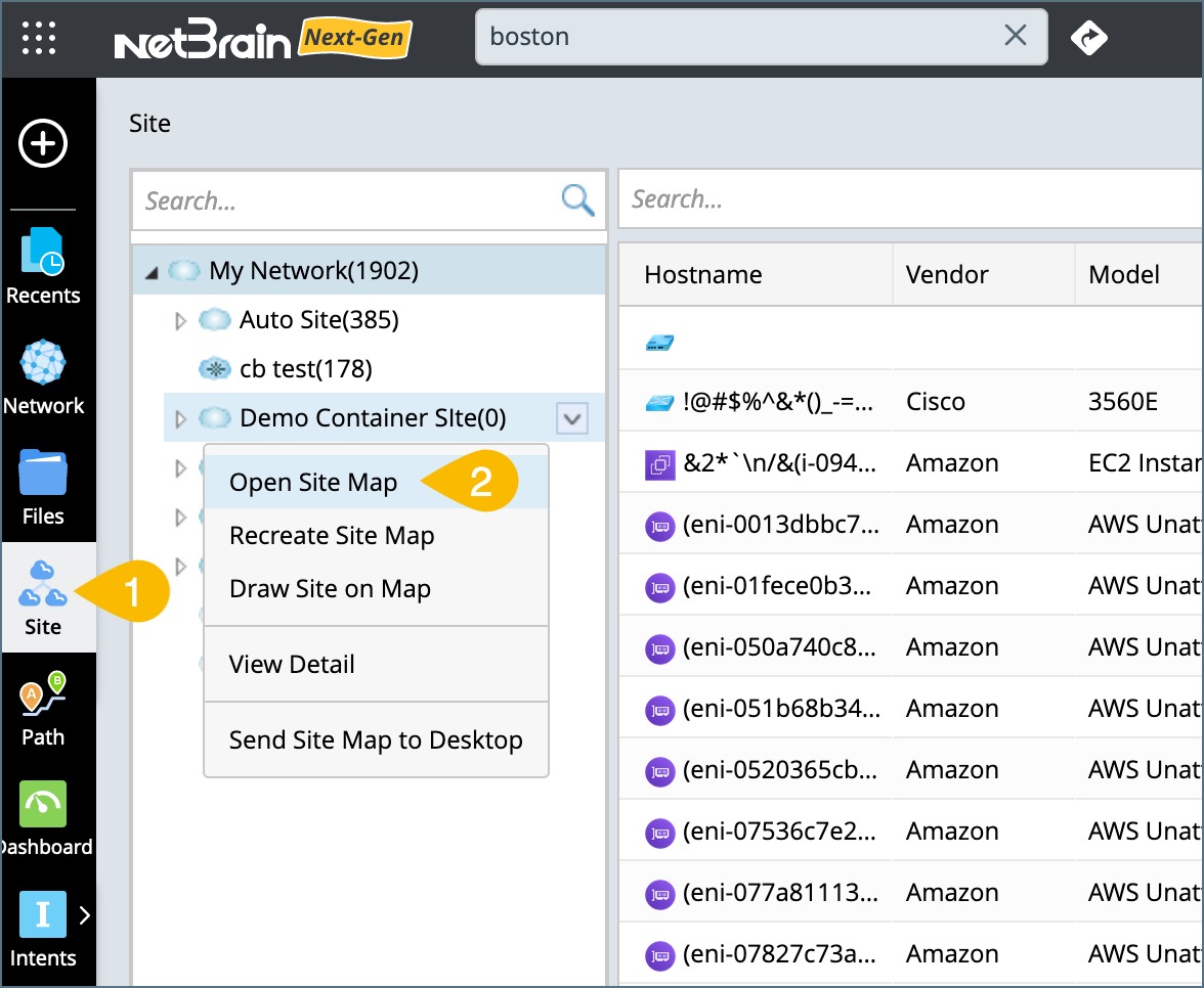 Expand the site tree, right-click the target site and select Open Site Map from the drop-down menu.
