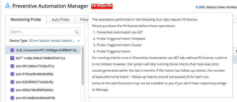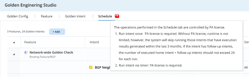 If a PA License is not purchased, the batch run of ADT/Golden Intents (in the Golden Assessment pane, ADT intent column, Preventive Automation [PAF] via ADT, and GES-Schedule tab) follows the rules: