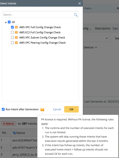 Rule Discovery → Auto Run Golden Intent after Generation Without PA license, the icon | |