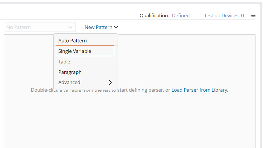 - Click the down arrow beside + New Pattern, then select Single Variable to create a new single-variable pattern.