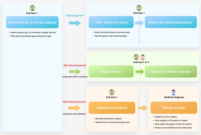 R12.1 Project-2025Sep08 Parser Discovery Parser Discovery allows you to : Quickly find a parser you need from the parser librarySubmit a ticket to request NetBrain Engineers to help you create a parser Resolve Errors Searching for a Parser