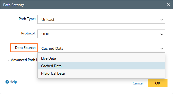 Tip: The parameters displayed in the path settings can be predefined on the Domain Management page (Operations > Domain Settings > Path Parameters Settings). See Built-in QoS Parameters for more details. |